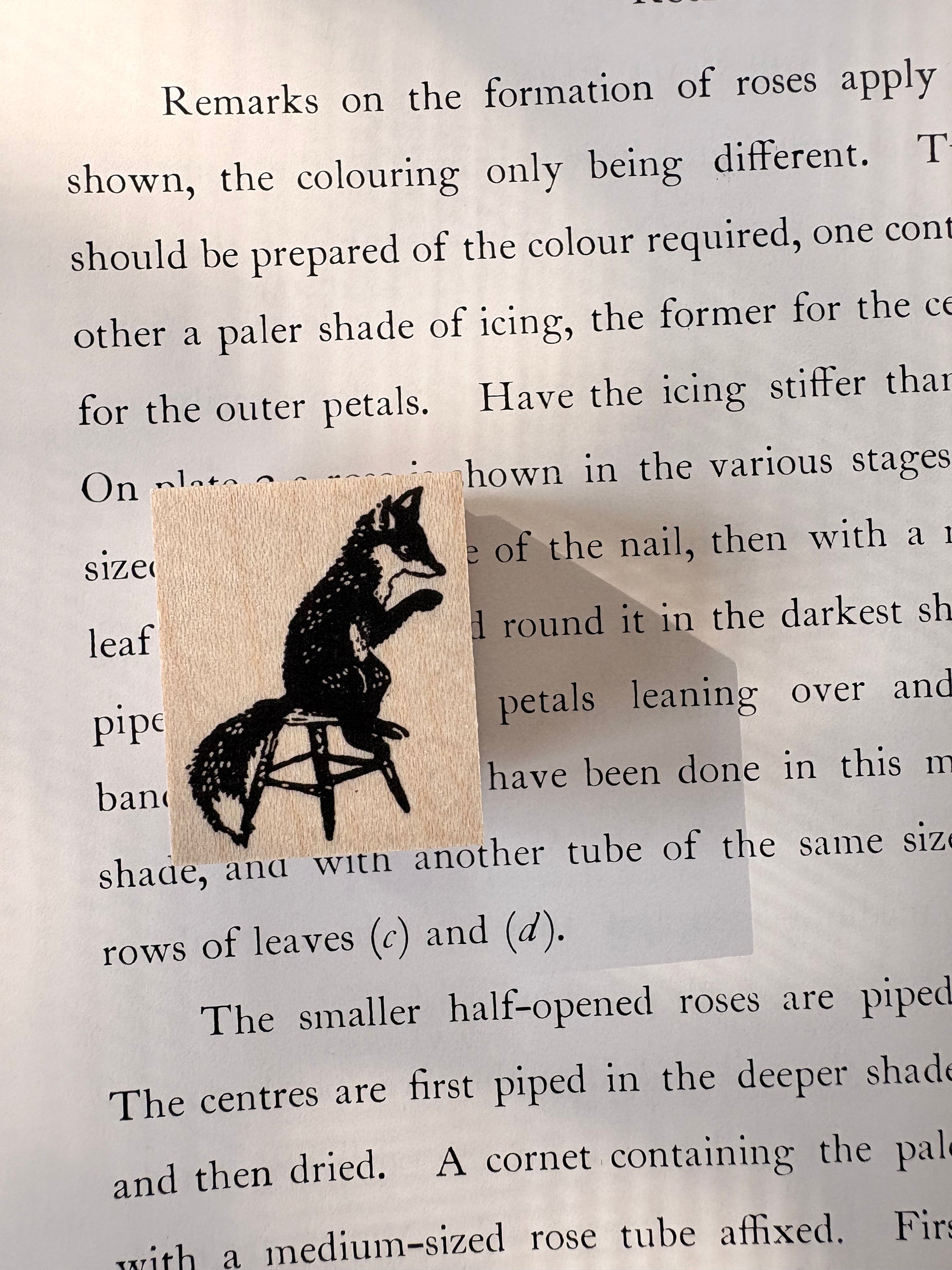 スツールに腰掛けたキツネ