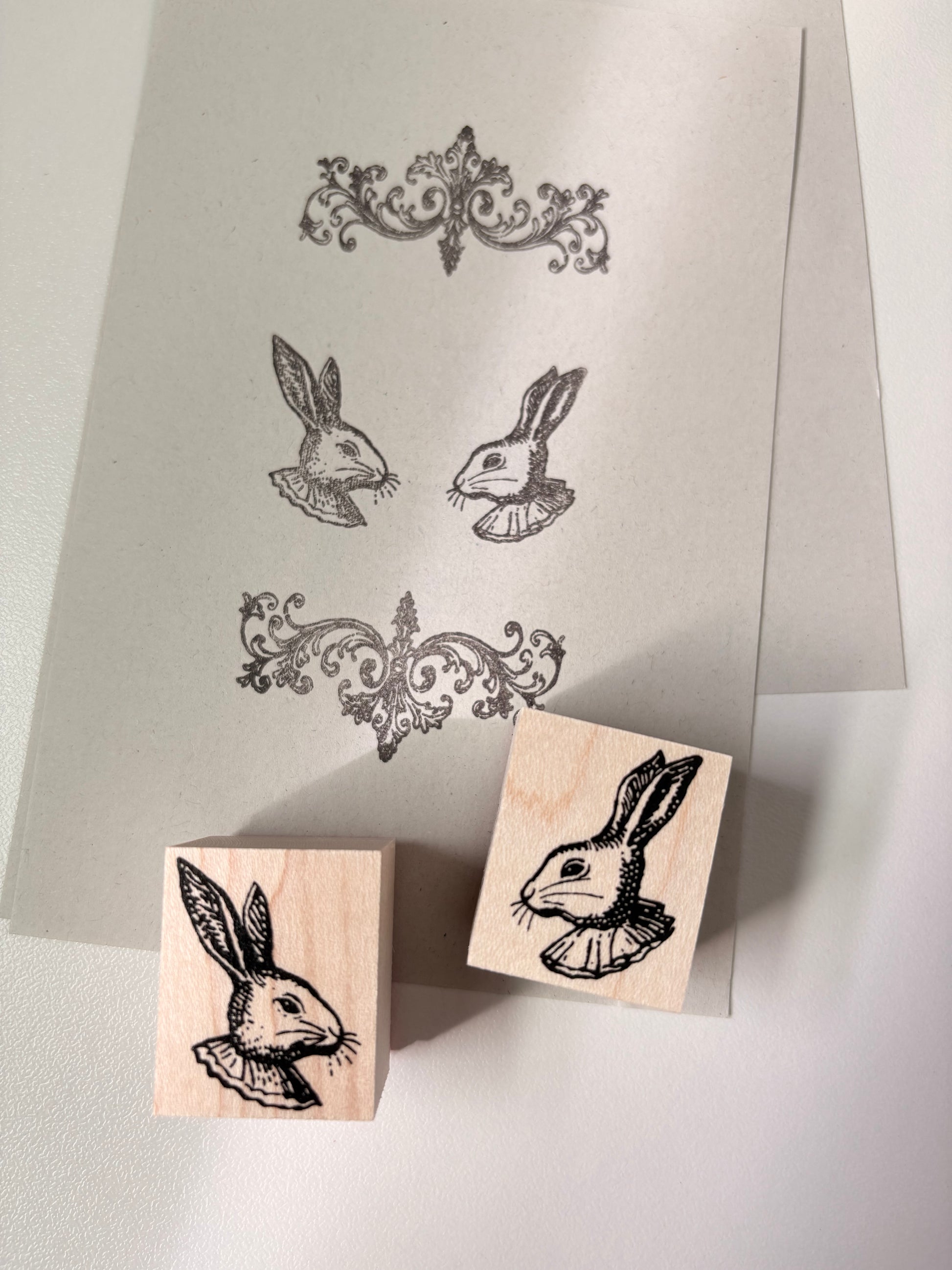 アンティークなタッチで描かれたウサギのスタンプ